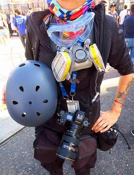 Y los fotógrafos se calzaron casco y máscara antigas para trabajar.