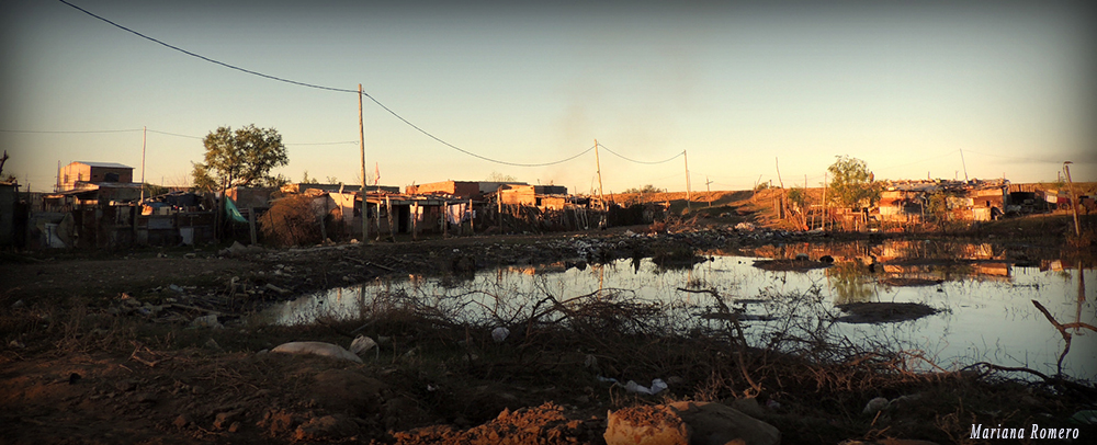 (APe).- El barro es origen. El agua parece comerse la tierra y la arena. De tan cansada ante el constante aguacero, ya no drena. Los más chiquitos andan con sus piecitos en el barro, como divirtiéndose; las madres, enojadas y en ojotas, les gritan, insisten para que salgan del lodo, como si fuese posible  escapar de aquello que los rodea. Más atrás cruzan por la calle principal un par de pibes que van a la escuela y que prefieren conservar el blanco de sus únicas zapatillas, por eso deciden cubrirlas con bolsas de supermercado, hasta que alcanzan el asfalto prometido y se deshacen de ellas, teniendo dos más de repuesto, para la vuelta. Otros, afortunados, andan también en botas de caña alta, pero son los menos.