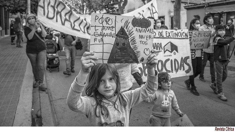 Las vidas de las niñeces en Andalgalá están atadas al cerro. La larga lucha de ese pueblo arrancó hace dos décadas. En un camino de resistencia sostenido que, además, se fue complementando cada sábado con las caminatas que arrancaron el 2 de enero de 2010. En los días previos, un megáfono había recorrido las calles y cada barrio y la respuesta popular fue masiva y contundente. Hacía demasiado que se venían plantando con sistematicidad contra las mineras. Y hoy redoblan esfuerzos para frenar el proyecto Mara (Minera Alumbrera Agua Rica) para la extracción de oro, cobre, molibdeno y otros minerales del yacimiento. Que es operado por las empresas transnacionales Yamana Gold, Glencore y Newmont. En apenas unos días, el 22 y 23 de octubre concretarán el festival nacional para los pueblos “Puentes de agua”.