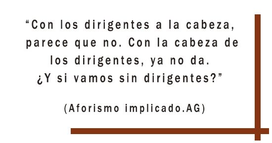 Las marchas no son desfiles. Incluso, son lo opuesto. En una marcha no hay columna vertebral. Hay muchas ramificaciones, muchos despliegues y otros tantos repliegues. Hoy hablaríamos de líneas de fuga. El éxodo jujeño no fue un desfile: fue una marcha de heroínas y héroes. Pero nada sabe de eso la columna vertebral. Para tomarla en serio, tiene que ser: columna, o sea, sostener todo el peso de la militancia y vertebral, o sea, central. Sin sucursales. ¿CGT de los Argentinos? ¿Qué es eso? Personería gremial para la CTA: de ninguna manera. Una sola columna vertebral. Y columna del estado benefactor. Ninguna huelga para un gobierno que es de los trabajadores.