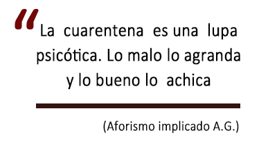 No sé si el origen fue la sopa de murciélago o un puchero de lombrices. Lo importante es que ha sido la operación más exitosa de aislamiento, reclusión, encierro, destierro o como se llame, para que las vacas entren solas al corral. El peligro actual es que entre el interferón cubano, que clona gente normal en comunistas, la plasmaféresis, y la temible vacuna que será descubierta y patentada , el covid 19 puede quedar obsoleto. Pero ya hay una variante que no podrá ser anulada. El covid 1984. Control individual, vincular, familiar y social. Trabajo en casa con lo cual ir del trabajo a casa será sencillo. Lo real será lo virtual. La diferencia entre percepción y alucinación (auditiva, visual) será abolida. La realidad virtual será sin casco.