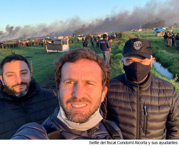 De hecho, la secretaria de  Gobierno, Teresa García, habló con los medios. Y dijo que el desalojo  no  tuvo nada que ver con la gobernación. “Manda judicial”, definió. Y hasta enunció el bélico “daños colaterales”. El fiscal se sacó una selfie en medio del operativo, cuando ya había  amanecido, la gente había sido  corrida y las casillas  estaban todavía humeantes.