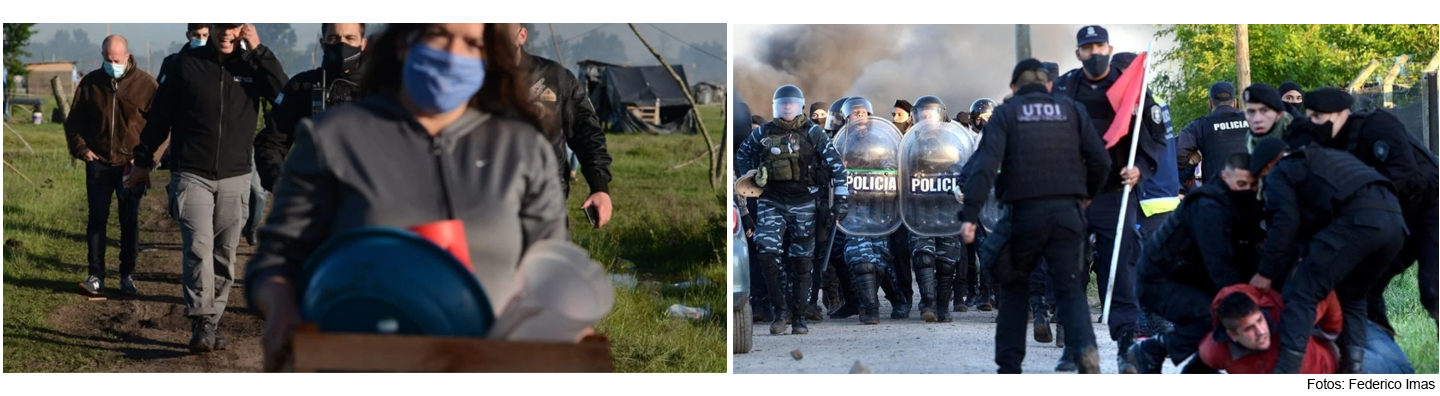 (APe).- Minutos antes de las cuatro de la mañana era noche cerrada. El sueño sobresaltado  de los habitantes del  predio  de Guernica fue  interrumpido violentamente: algunas niñas y niños fueron llevados fuera, en una carrera contrarreloj contra lo inevitable. Una advertencia de lo que vendría poco después permitió resguardarlos. Otros, la mayoría, debieron quedarse  allí. Quedarán tatuadas a fuego en sus memorias las imágenes del horror. De la cacería humana. “Entraron a las 4 de la mañana, estaban los chicos durmiendo, la gente corriendo con los chicos. Nos dejaron tirados, los nenes lloraban y corrían. No veíamos nada. Ellos avanzaron y no les importó nada. Fue horrible ver a los chicos, todos corriendo y llorando”, reconstruye la Red Nacional de Medios Alternativos a partir del testimonio de una mujer en el territorio. La sucesión de fotografías de carne y hueso los acompañarán para todas sus vidas. La quema de casillas al paso firme policial que arrasó con todo. Muy atrás en el tiempo, pisoteada, enterrada, destrozada, queda la esperanza de una promesa de paraíso.