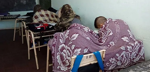 Así llegan los pibes a la Escuela 33 de Mar del Plata. Envueltos en frazadas, desarmados ante el ataque del invierno. Cómplice de los predadores. Y esperando que alguna semilla insolente asome en otra primavera.