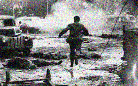 Entre las bombas que inventaron cráteres en pleno centro de la Capital Federal --hecho inédito que jamás fue contemplado en las reglas de la guerra convencional y no convencional-- se encontraron las señales VC, Cristo Vence.