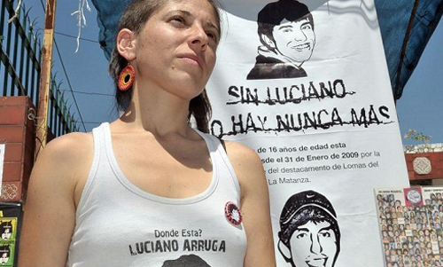 Luciano Arruga tiene los mismos 16 años eternos. Desde aquella noche de finales de enero de 2009 en que salió de su casa en la esquinita del barrio 12 de octubre. Donde la pobreza se choca con la pobreza en cada ángulo. Luciano Nahuel Arruga nació un 29 de febrero, era fanático de River, tenía sueños, amaba la vida. Luciano era valiente porque le dijo que no al poder más férreo y oscuro. Le dijo que no a la perversidad del Estado que busca pibes de los márgenes para hacer botín para su propia corona. “El chabón siempre tenía buen humor. Yo era más caracúlica y él se lo bancaba. Yo por ahí le decía ´andá a cagar´ y él nunca se enojaba”, decía siempre Vanesa.