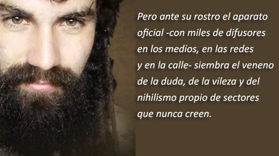 Pero ante su rostro el aparato oficial -con miles de difusores en los medios, en las redes y en la calle-, siembra el veneno de la duda, de la vileza y del nihilismo propio de sectores que nunca creen. No creen que los desaparecidos desaparecieron porque están en Europa. No creen que Yabrán se haya suicidado porque está en las Islas Vírgenes. No creen que las pibas violadas y asesinadas sufran femicidio, porque usan ropa ajustada y se la buscan. No creen que a Santiago lo haya esfumado el estado porque está escondido, drogado y panza arriba en una playa chilena. No creen que López haya sido chupado por la vigencia de un grupo de tareas porque era viejo, tenía Alzheimer, “fue guardiacárcel” y se cayó solito en una zanja. El argentino medio suele edificar sus teorías conspirativas demoliendo la verdad.
