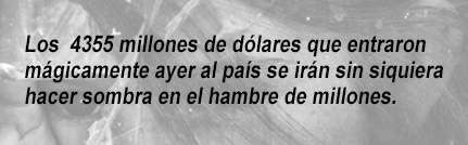 Los 4355 millones de dólares que entraron mágicamente ayer al país se irán sin siquiera hacer sombra en el hambre de millones. Después vendrá el acuerdo. Y los inviernos serán más crudos en este lado del mundo.
