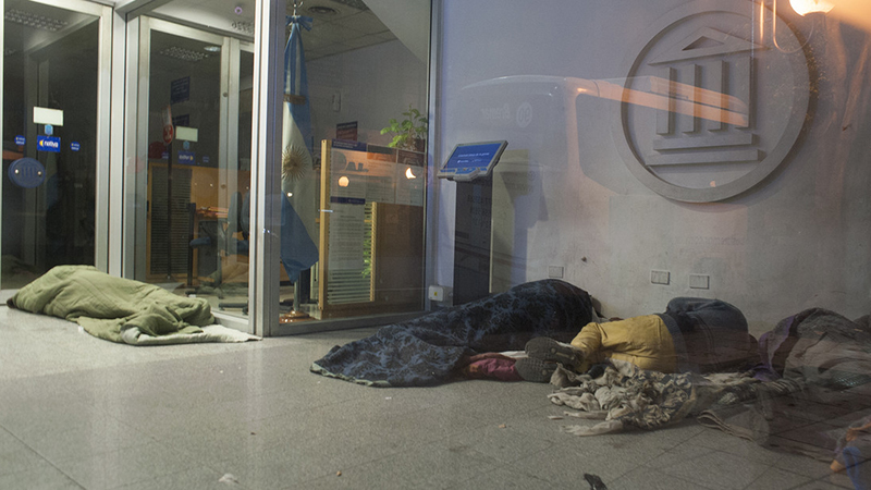 En estos días están en todos lados. Aun donde no estaban nunca. Desalojados de sus piezas de alquiler, de sus hotelitos, con sus familias de sus casas, echados de sus trabajos, desterrados de un mundo que ya no les pertenece. De un territorio pensado para pocos. Que no los incluye. Con un estado que les niega alimentos, abrigo, techo, seguridad. Un estado en demolición, cuyo representante ocasional vive a través de las redes y se pasea por streamings baratos de mameluco y un perro insultando con rimas de la secundaria. Mientras su cohorte deja a la buena de dios a la niñez, a la vejez, a los enfermos terminales y a todos aquellos irresponsables que pongan en peligro la sacralidad del déficit cero.
