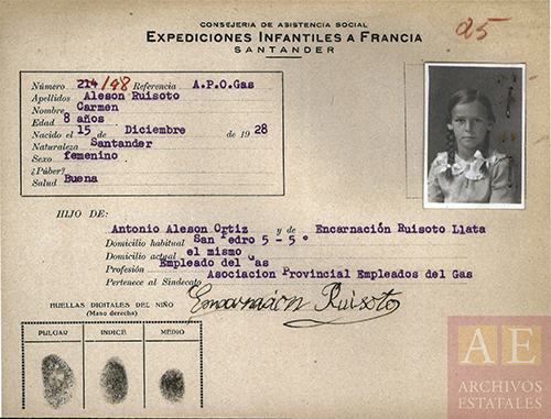 La pequeña Carmen, de 8 años, fue enviada a Francia por su familia republicana.