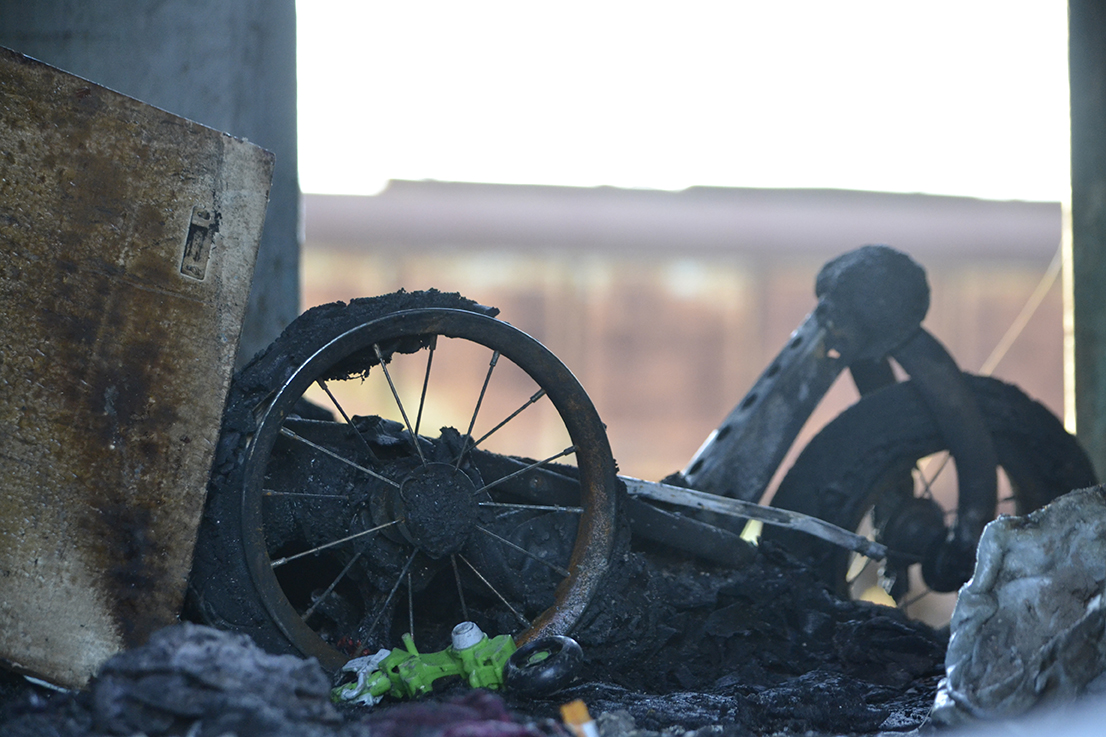El segundo vagón se prendió fuego a las dos de la mañana del viernes. Los más grandes habían salido a comprar cigarrillos. Nahuel, el Colo, intentó salir y no pudo. Gritó que lo sacaran. Su madre y Ramón lo intentaron. Ella le respondía los gritos y el fuego y el calor le quemaron la frente.