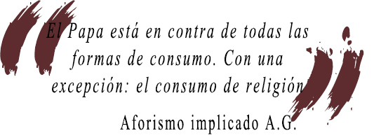 Todas las formas todas, desde las más angelicales a las absolutamente bizarras, buscan potenciar y sobre potenciar el consumo hasta que ni la tarjeta del final pueda salir. El mecanismo sociopático y manipulador recibe el indulto al denominarlo “marketing”. Y la cueva de ladrones, estafadores, mercaderes de todos los templos, recibe otro indulto al denominarlo “mercado”. Y como sabemos el indulto jurídico, político y cultural es la masa putrefacta para cocinar las pizzas de todas las formas de la impunidad.
