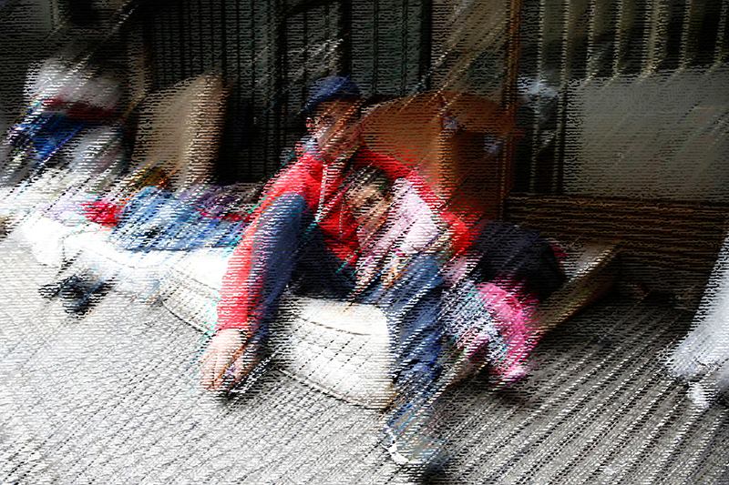 El maneja la caja de bananas con su escaso capital. El niño lloriquea por algo. O por todo. Hay un fin de semana largo por delante. Todo está cerrado. No hay comida cerca. No hay certeza ni abrigo ni esperanza.
