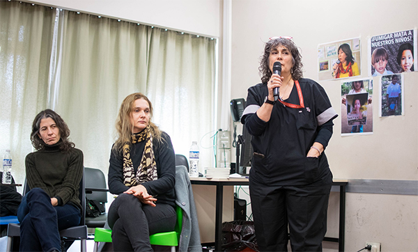 Meche Méndez desgajó algunos párrafos del libro para presentar a los autores y a Paola Kruger, la maestra rural de Baradero, quien aportó un testimonio dramático de lo que se vive cotidianamente en un territorio fumigado, de ésos con apariencia bucólica pero con deriva atroz.