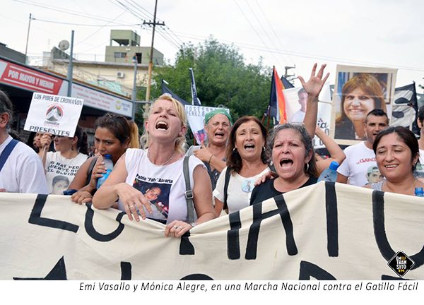 -Cuando yo empecé a militar, fue con familiares de la Correpi. La primera mamá que conocí se llama Julia Torres, la madre de Christopher Torres. El asesinato de su hijo fue hace 14 años. La sentencia quedó firme hace dos años y medio y desde entonces el policía está prófugo. Que es lo que ocurre cuando se los condena y la sentencia no queda firme en el momento. Cuando queda firme, ya no están. Se fugaron. Con Julia aprendí mucho. Como yo fui siempre de meterme en todos lados y me dediqué a ir a cuanta actividad se hiciera, empecé a contactarme con familiares de otras zonas y después tuve la suerte de conocer gente que me fue marcando el camino, que me fue acompañando. Conocí a Norita, Mirta, Elia (todas Madres de Plaza de Mayo), a todas las chicas que las acompañan, a ex detenidos desaparecidos. Y nosotros sostenemos que el gatillo fácil, las muertes en contexto de encierro y las desapariciones tienen los mismos métodos que se usaron en la última dictadura y antes también. Es una política de Estado y no basta con llevarlos a juicio solamente.