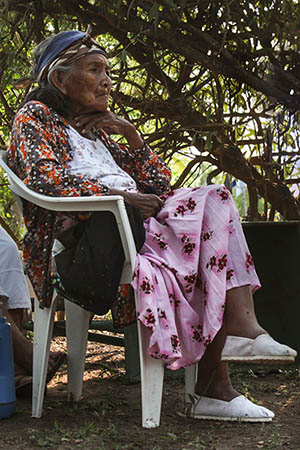 Ahora ya anciano, Solano, apoyándose sobre un bastón de palo mataco de fuerte simbología entre los Qom y Pilagá, revivió con un suspiro ahogado años de búsqueda de justicia a tientas. El naranja del cielo se demoraba un poco más entreverado con la tormentosa palabra del dolor y amansándose tras la primera negrura del ocaso. Después, la voz de los máximos dirigentes de la Federación: Bartolo Fernández, Presidente; Noole (Cipriana Palomo), Presidenta del Consejo de Mujeres y Ángel Navarrete, Presidente del Consejo de Ancianos.