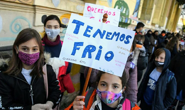 En Quilmes, en Lanús, en General Rodríguez. En La Plata, en Avellaneda, en Mar del Plata, en Bahía Blanca. Decenas de escuelas cerradas por frío. Y las que quedan abiertas, son una cámara frigorífica. Donde lo que se conserva son niños y adolescentes. En estado de congelamiento físico, psicológico, intelectual. Envueltos en frazadas y gorros y bufandas. Con el ánimo paralizado como una estalactita. Sin posibilidades de comprender nuevos desafíos matemáticos, sujetos y predicados o aventuras de héroes que cruzan por valles nevados para ir a liberar países detrás de la cordillera.