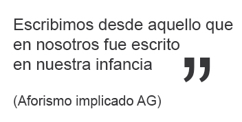 Como señalara Freud: “el Yo no es dueño en su propia casa”. El Yo habla, y el Yo escribe. Pero también el Yo es hablado, y también el yo es escrito. ¿Quién escribió lo que esto escribe? Yo. Lo dice el texto: “por Alfredo Grande”. Pero todos hemos sido escritos en nuestra historia infantil.