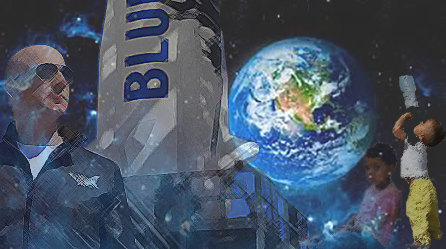 El resto se quedará aquí, para que Bezos mire desde arriba, en su reposera cósmica, las inundaciones feroces, los bosques desaparecidos, el Paraná seco, el Africa pauperizada y exterminada, la infancia condenada desde el origen.