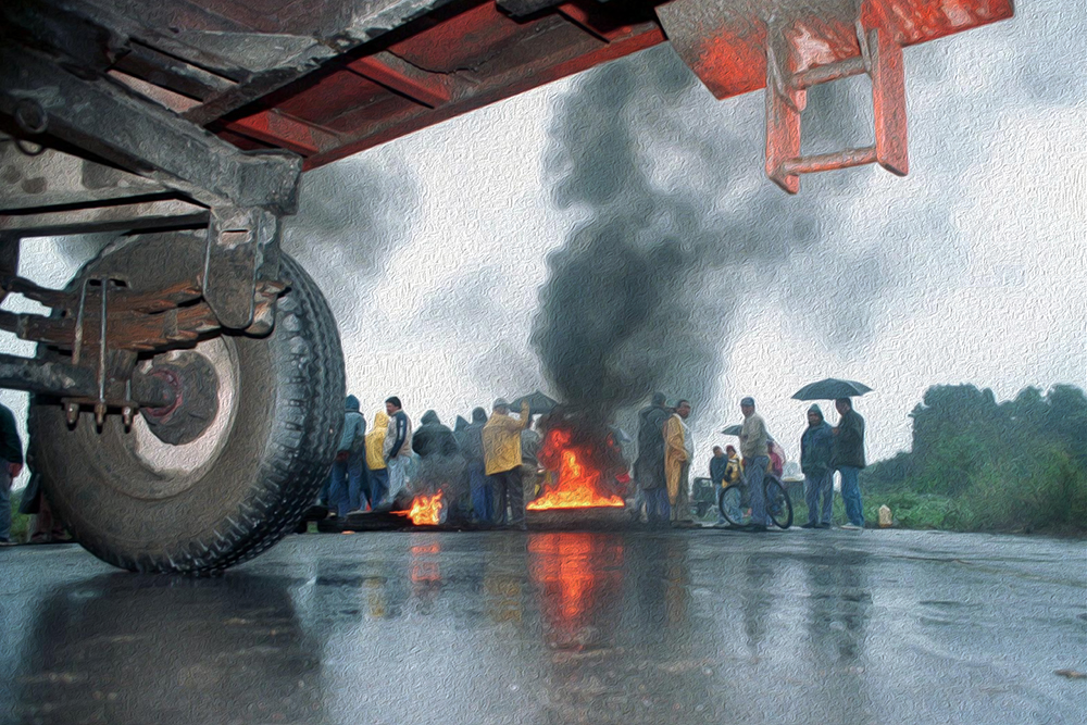 El cordón industrial de San Lorenzo, provincia de Santa Fe. Donde la riqueza es una serpiente que engorda y lanza fuego por las narices. Y la gente, un complemento molesto al que se exonera del placer y de la necesidad fatal para la vida. Entonces hay que cortar la calle por donde pasan, la ruta por donde crecen, el camino por donde la concentración obscena los cesantea. A aquellos a los que la vida les cuesta un retazo de muerte cada día. A los que se quedan solos. Como los cuatro niños de Jonathan Gardini. Que era vigilador y cobraría ¿13.000 pesos? ¿14.000? Una familia tipo, como la llaman las estadísticas, (dos hijos) necesita 13.155 pesos para no ser pobre. La familia de Jonathan Gardini formaba parte de los trece millones de pobres que, como una legión entumecida, avanza todos los días hasta el almuerzo de mañana. Sin más sueños que la sobrevida.