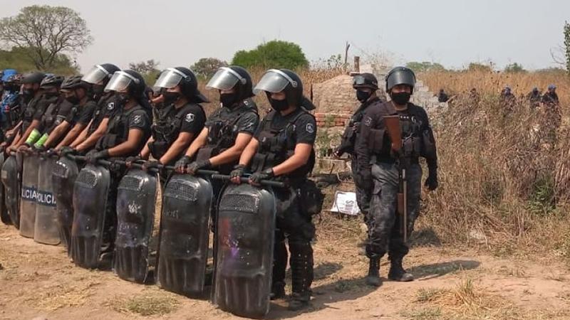 En Caspalá, son 16 los imputados por resistir el desalojo. Los cargos que se les endilgan son varios: “robo agravado”, “daños agravados”, “usurpación”. Tras las indagaciones al casi 5% de su población (son 350 habitantes), el 11 de enero, la Fiscalía de Investigación Penal Preparatoria N°1 de Humahuaca, a cargo de Leila Rodríguez, imputó a les 16 integrantes de la Comunidad.