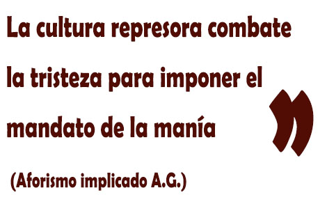 También es nuestra enemiga la manía. El “pum para arriba”. “Ponete las pilas”. Porque es la alegría por mandato. La revolución de la alegría fue la contra revolución de la manía. Espejitos y globitos de colores. Y dolores. Alegría y tristeza no son una extraña pareja: son una pareja necesaria. La pareja siniestra es melancolía y manía, eso que algunos llaman trastorno bipolar. Y otros democracia y dictadura. O sea: la continuidad de la dictadura cívico militar ahora en formato democrático.