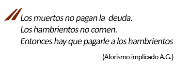Para muchos y muchas, el DC es volver a la fiesta del consumo. Yo propongo recuperar a El Hogar Obrero y al Supercoop. Expulsar a todas las multinacionales alimentarias, culpables del hambre y la miseria. Nacionalizar el comercio exterior, la banca transnacional y nacional. Pagar la estafa será considerado traición a los intereses y deseos del pueblo. No tengo fiebre pero ardo de indignación por la impunidad de los refugiados en sus palacios y son criminales de guerra y criminales de paz. Que me ayude Camarón de la Isla cantando “Un tiro al aire”: Dos corazones a un tiempo / están puestos en balanza uno pidiendo justicia / y otro pidiendo venganza.