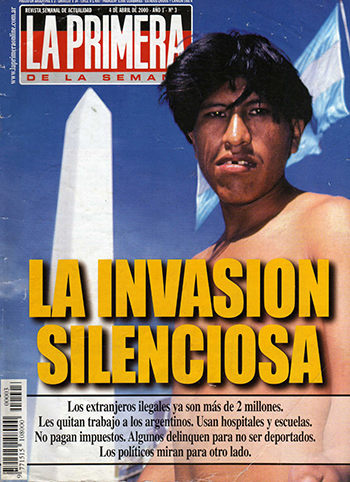 (APe).- “Los extranjeros ilegales ya son más de 2 millones. Les quitan el trabajo a los argentinos. Usan hospitales y escuelas. No pagan impuestos. Algunos delinquen para no ser deportados. Los políticos miran para otro lado”. Eso se lee en la Revista La Primera, que dirige Daniel Hadad, en un artículo firmado por Luis Pazos, con un título tan amarillo como su contenido. Dice con letras capitales: “La Invasión Silenciosa”.