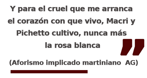 Las vacilaciones de Alfonsín entronizaron al Menem del salariazo y la revolución productiva. Gatopardismo mediante, ya no se promete salariazo y menos revolución, ni siquiera productiva. Como siempre supimos: “solo el pueblo salvará al pueblo” Y como he propuesto varias veces: “que el pueblo delibere y gobierne a pesar de sus representantes”. De mínima, plebiscitos vinculantes y revocación de mandatos. No soy peronista, y a mi edad no creo que pueda serlo. Pero hay que volver a la constitución de 1949, nunca derogada, nunca aplicada. Pero siempre del lado izquierdo de la estaca: ¡Hay que dar vuelta el viento como la taba, el que no cambia todo, no cambia nada!