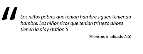 El gran Armando Tejada Gómez lo marcó a fuego. Ahora la niñez encuentra en la calle algún refugio. Pero la calle no es la patria. La calle es la pasta base del boom inmobiliario. Sin casa no hay patria. Los despatriados ni siquiera tienen su día. Lo que tienen es una noche eterna donde no hay sueños y sólo hay pesadillas. A falta de patria, al menos tendrán un rap. En el mejor de los casos. Que los niños y niñas tengan patria nada tiene que ver con un privilegio. Y tampoco tiene que ver con un derecho. Tiene que ver con la profunda convicción de que la niñez no tiene patria hasta que la patria sea la niñez sin hambre. Hasta que la niñez tenga presente y tenga futuro. Hasta que la niñez tenga un pasado que no la condene.