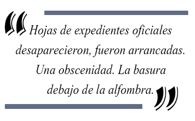 Ahora la noticia dice que hojas de expedientes oficiales desaparecieron, fueron arrancadas.