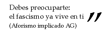 Esos mandatos son generados y distribuidos por el infernal aparato publicitario. La publicidad es otro de los opios del pueblo. El modo de producción capitalista tiene muchas especialidades. Una de las más importantes para modelar la cultura es la producción de mandatos que finalmente terminan ser deseados. Es lo que llamo el deseo del mandato. Todo esto para enfatizar que esta compleja logística es barrida por el fascismo que impone los mandatos con la vieja consigna: “palo y a la bolsa”. Lo que me indigna demasiado es que para algunos, incluso popes de la izquierda, el fascismo en la Argentina apareció con Milei.