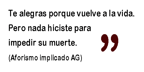 Y en este viernes santo se conmemora la crucifixión del Nazareno. La cruz como herramienta de tortura y como patíbulo. Mientras unos se lavan las manos, otros inspiran y conspiran para que el pueblo se las ensucie. La historia del fracaso de la profecía sigue su eterna repetición. También se repite la resurrección. La cultura represora institucionaliza un tridente: “recordación – resurrección – repetición”. La repetición anula retroactivamente los efectos de la resurrección y neutraliza la recordación. El Hijo no puede subvertir los designios exterminadores del padre represor y a pesar de reconocer su abandono, termina ocupando un lugar como su lugarteniente.
