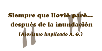 Las penas son de nosotros, los olvidos son ajenos. Y ese enamoramiento a escala social donde los que van a morir saludan, abrazan, aplauden a sus verdugos, termina en las muertes siempre anunciadas en una escala brutal que podemos denominar “pueblocidio”. Desde ya, la cultura represora contabiliza como “muerte” la muerte real, biológica, definitiva. Pero hay muchas formas de morir que la cultura represora no entiende. La muerte de los recuerdos, la de los afectos más entrañables, la muerte de nuestrsa alegrías, la muerte de nuestras esperanzas. La muerte de nuestros deseos y de nuestros anhelos. Incluso la muerte de nuestros muebles, de nuestros cuadros, de nuestras fotos, de nuestra ropa. Porque el agua ahoga todo eso y podemos seguir viviendo, podemos secarnos por fuera, pero también estamos secos por dentro.