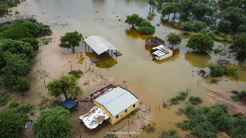 Hoy la zona de Rivadavia Sur está abandonada. Sitiada por agua, con tierras arrasadas que no drenan la corriente, el Bermejo desagota su furia desde Chaco a Salta y ni los proyectos inmobiliarios, ni los emplazamientos de ganadería extensiva, ni las plantaciones de cultivos no autóctonos, son parte de las conversaciones. Tampoco los responsables se sientan en ningún banquillo a ser acusados. Libres, secos, con los bolsillos repletos, cuando la mierda llega al cuello de las comunidades, lanzan comida desde helicópteros, reparten donaciones insuficientes y aparecen a la hora de las votaciones.