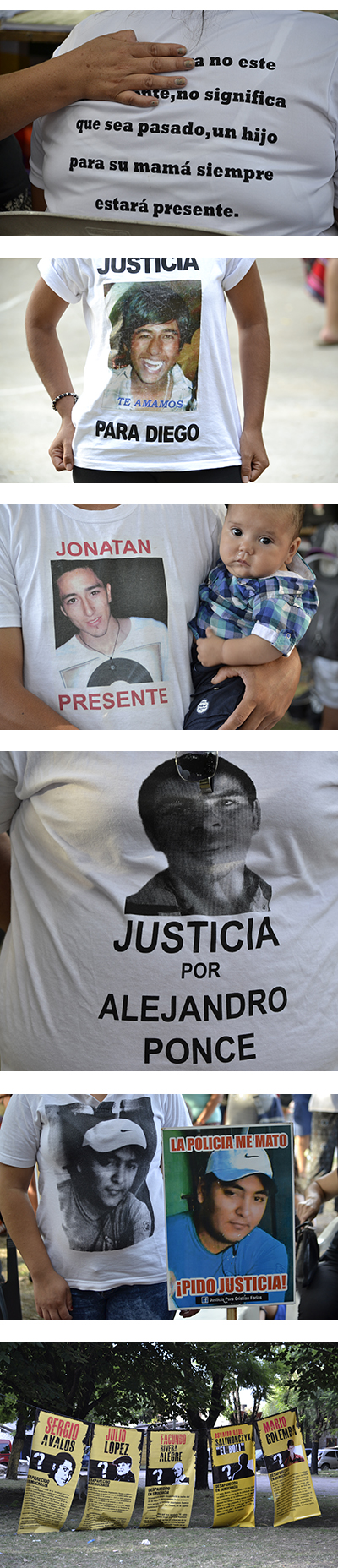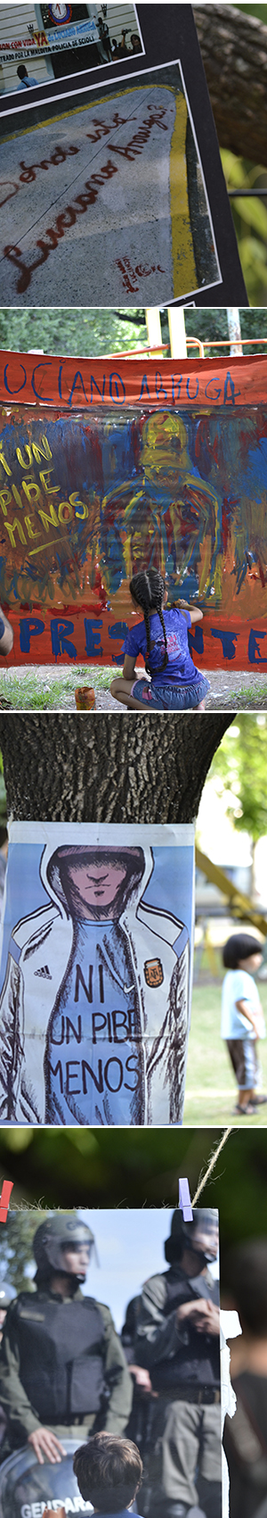 En la plaza donde están los que siempre están. Pero falta el resto. Los que no tienen muertos en una foto. Los que que llevan a jugar a sus niños por otras plazas. Los que cruzan de vereda cuando vienen los lucianos. Los que creen que sus hijos no corren peligro. Los que reverencian a la policía y creen en sus suicidios por la espalda y en sus chicos atropellados por accidente.