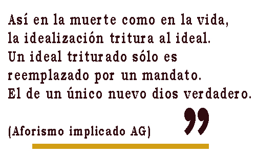 Héroe colectivo, colectivo de héroes -como alguna vez en una actividad en Mar del Plata me animé a plantear- o meritocracia divina. La idealización, la idolatría, siempre es la marca de la cultura represora. Y como tal, reaccionaria.