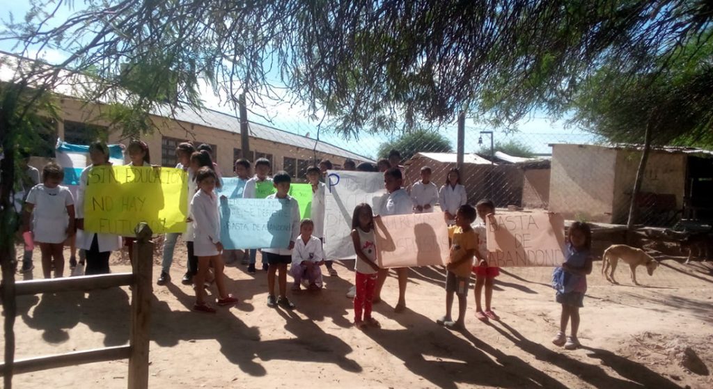 Cada año, como un mantra que nadie escucha, se repiten los reclamos que –detalle más, detalle menos- siguen siendo eternamente los mismos. Hacia mayo de 2023, el cacique Wichí Lhantawo Julio Díaz denunciaba en diálogo con Salta/12 que “gestionamos la ampliación de la escuela más un salón comedor, porque los chicos están a la intemperie y cuando llueve no se pueden resguardar. También un salón para los actos y cerramiento perimetral. Finalmente, el arreglo de los sanitarios, porque ni siquiera los docentes tienen baños. Los chicos usan espacios sucios y las nenas, de 12 o 13 años, tienen infección urinaria”. Esa realidad continúa sin encontrar solución.