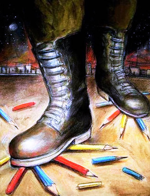 (…) Finalmente, toda esa masa comenzó a abandonar el salón en silencio, caminado sin mirarse, hacia la puerta lentamente, concientes del terror en la piel porque en un año no habían denunciado a ningún docente de sus escuelas.