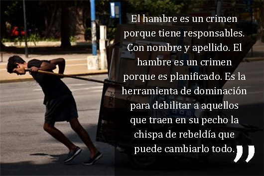 El hambre es un crimen porque tiene responsables. Con nombre y apellido. El hambre es un crimen porque es planificado. Es la herramienta de dominación para debilitar a aquellos que traen en su pecho la chispa de rebeldía que puede cambiarlo todo.
