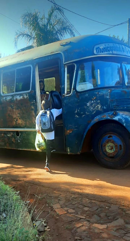 (APe).- Parece una foto de tiempos pretéritos, pero es de hoy: 1 de marzo de 2023. Primer día de clases en la provincia de Misiones. Desvencijado, con su carcaza totalmente oxidada y neumáticos que dan pena, el viejo colectivo modelo 1968, fue a buscar por los barrios de Concepción de la Sierra, a las niñas y niños que acuden a la Escuela de Frontera 602, que se encuentra en el paraje rural Barra Concepción. Este es el transporte escolar que el municipio de Concepción de la Sierra dispuso para tales fines. También viajan allí docentes, cocineras y auxiliares de dicho establecimiento escolar.