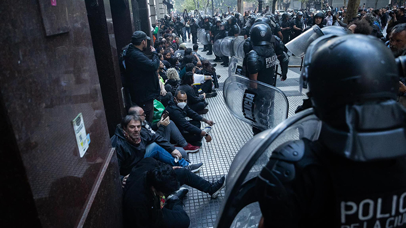 Pero la ministra, en toda su ruindad, sólo necesita despejar la calle. Una hora antes de la fijada para manifestarse, envió a sus empleados. Armados hasta los dientes. Listos para disparar. Listos para obedecer. Y no era la imposición del protocolo. Era la prohibición del reclamo. En una decisión abiertamente antidemocrática. Autoritaria. Peligrosamente ilegal. No se trataba de no cortar la calle. Era no estar.
