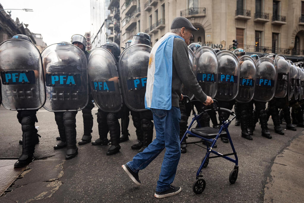 Pero hoy, después de la foto con la cabeza roja de sangre, la señora de 87 años empujada por el palo policial seguirá cobrando 349 mil pesos. Un tercio de lo que necesita para vivir. Seis millones viven como ella. Sobreviven como ella.