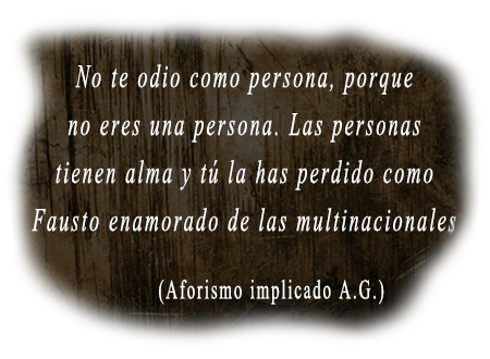 Empezamos con la coca cola y terminamos con los agrotóxicos. Las corporaciones, todas ellas, desde la familia patriarcal, pasando por el Estado No Representativo hasta las Multinacionales de las armas, la esclavitud, los alimentos – venenos, los contaminadores del aire, la tierra y el agua, no tienen alma. No hay humanidad en la Industria. No hay nada personal y eso es lo grave. Es todo tan impersonal, tan anónimo. Para ser más claro, alcanza rango ministerial el dueño de La Anónima. ¡Que cool!. La Gran Industria Multinacional también degüella a los pueblos, en una escala que el Estado Islámico Isis, financiado por la gran industria occidental, son apenas boy scouts.