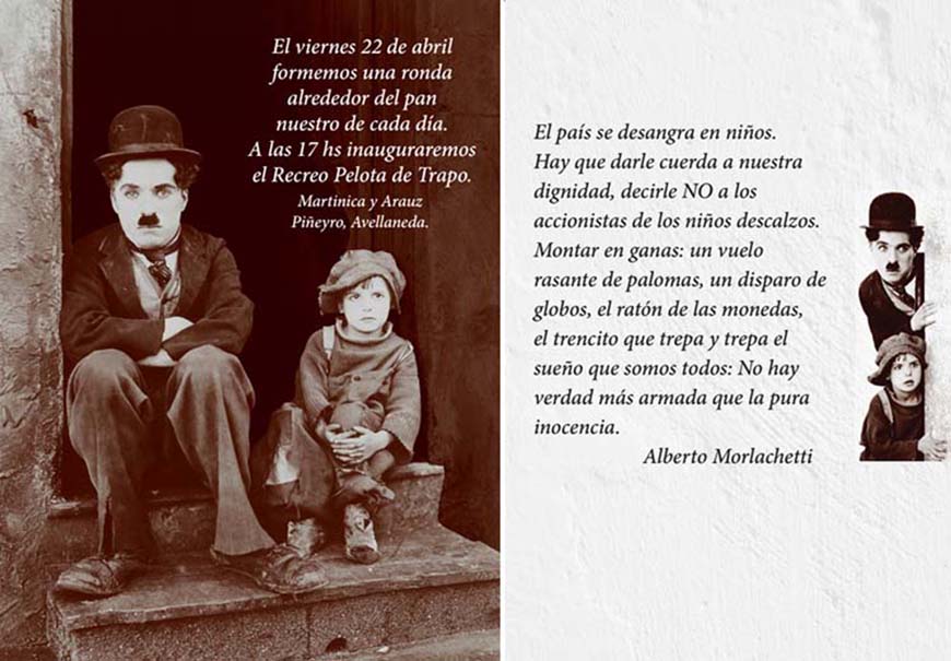 Hoy a las 17 se pone en marcha el recreo con el nombre del "Poeta de los niños que soñó y dio vida a Pelota de Trapo". Que enarbolará como siempre la consigna "El hambre es un crimen" porque el mundo es cada vez más agreste para los niños.