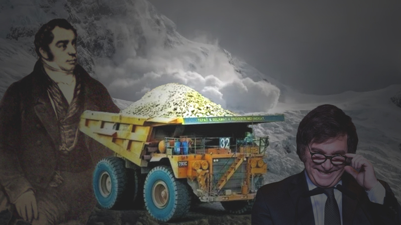 Milei trabaja para negocios multinacionales: lo prueba el caso Libra. Impulsa la entrega de los glaciares y sus riquezas. Como Rivadavia con el oro. Cobraba antes y durante su presidencia por participar en negocios. Lo mismo Rivadavia, empleado de las mineras inglesas. Más allá de la participación de 107 mil argentinos en una farsa de audiencia pública, esperan quedarse con los glaciares.