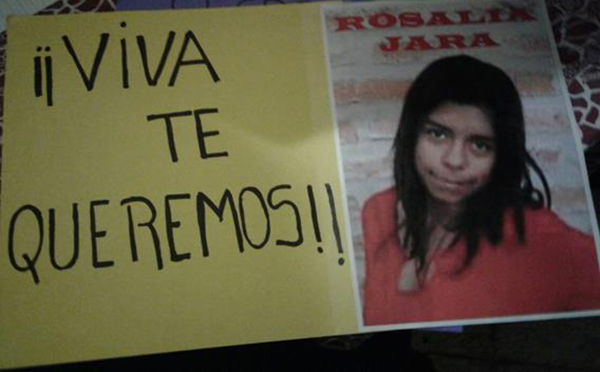 “Ella no es una cosa a la que podemos reemplazar, es una persona, tiene sueños, ilusiones y una vida por vivir, una hija que la extraña, una mamá y amigos que la esperan, un pueblo que la reclama. No desapareció por arte de magia ni por propia voluntad. La desaparecieron manos que no aprendieron que las niñas, las adolescentes, las mujeres, son personas y las personas no se las debe dañar, lastimar, tirar como basura, desaparecer. Manos que no aprendieron que a las personas las debemos cuidar, respetar y amar”, termina diciendo el papel afiche blanco, escrito con letras negras imprentas y en rojo se repite la frase como estribillo, en rojo fibra: “Nada por aquí, nada por allá. Rosalía no está”, sostenía aquel papel oficio.