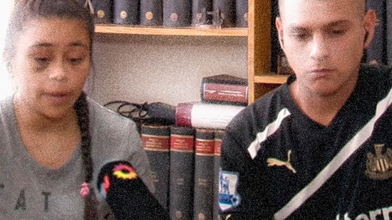 Ella, todavía con el ojo morado por los golpes. Los dos tratando de relatar el horror vivido.