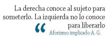 (APe).- He trabajado mucho el tema de la subjetividad. Recuerdo una cita de Lenin donde mencionaba el “retraso del factor subjetivo”. Sin entrar a discutir y menos con Lenin, si la subjetividad es un factor, es interesante la idea de retraso. O sea, y para decirlo en otros términos: la subjetividad suele ser reaccionaria. A veces denominada sentido común. Siguiendo a Silvia Bleichmar, notable psicoanalista y mejor amiga, a quien le escribí una despedida que titulé: “No habrá ninguna”, la subjetividad es la marca social en el psiquismo. Y como marca social se nutre más de lo instituido (lo que es) que de lo instituyente (lo que debería advenir) No hay nazismo porque hay nazis, sino que hay nazis porque hay nazismo. La marca social formatea la subjetividad según las marcas pregnantes de cada época.