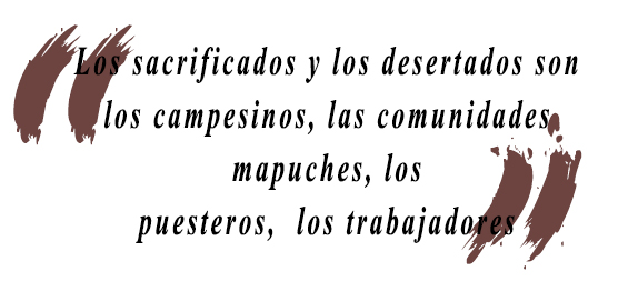El modelo extractivista se lanza a explotar el desierto. Con lo que Observatorio Petrolero Sur define como “zona de sacrificios”. Entonces, los sacrificados y los desertados son los campesinos, las comunidades mapuches, los puesteros, los trabajadores. Que deben aguantar o irse. Con la anuencia del Movimiento Popular Neuquino, gobernante desde hace más de cincuenta años, desertificador de expulsados sistémicos.